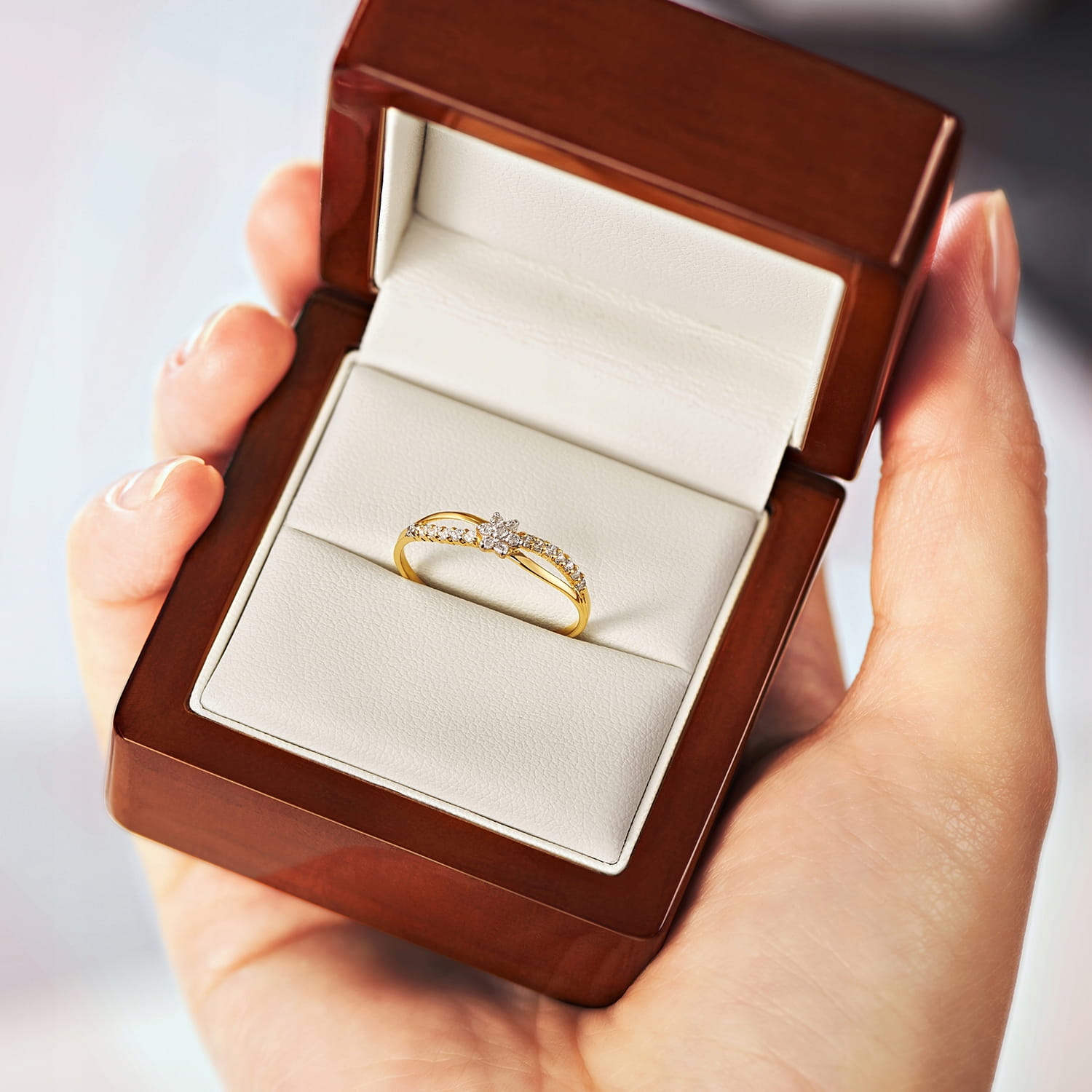 Złoty pierścionek zaręczynowy 1304b-2 333 8K cyrkonia