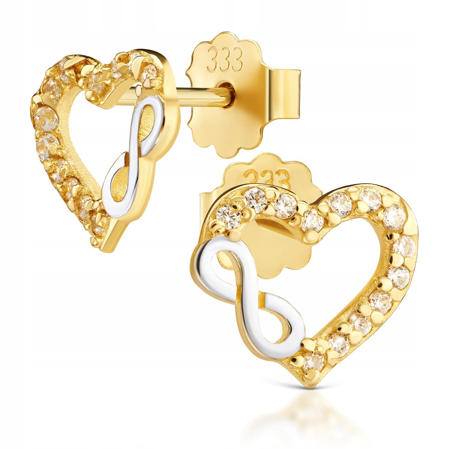 Złote kolczyki z cyrkoniami złoto 333 8K serce 2436-3